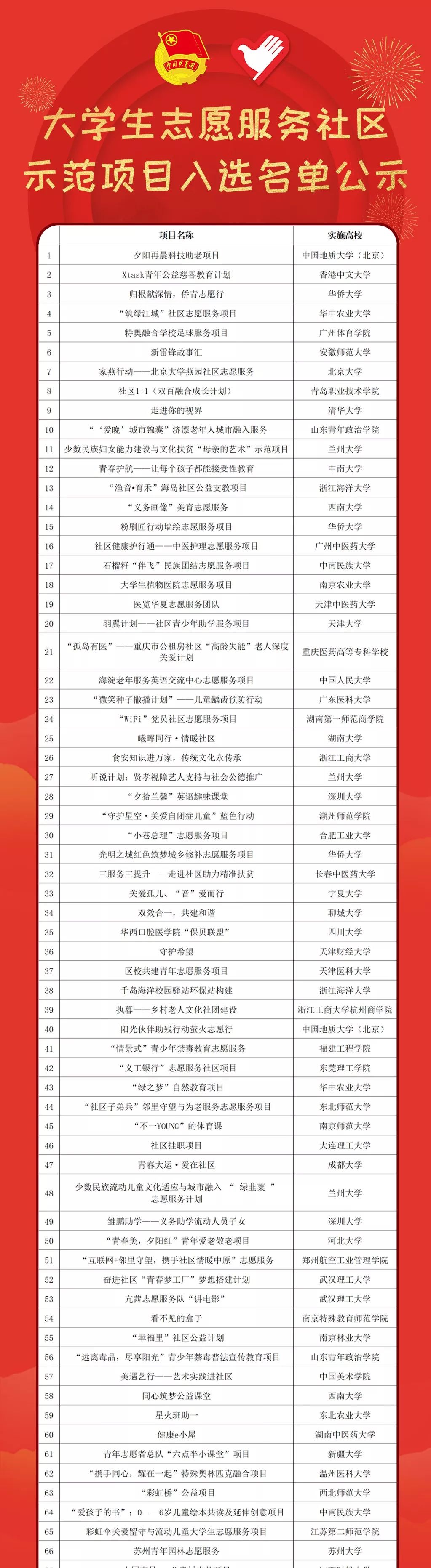 团中央青年志愿者行动指导中心、中国青年志愿者协会秘书处于9月份面向全国高校公开遴选大学生志愿服务社区示范项目。在全国各高校申报的1160个项目中,通过资格审查,共有854个合格申报材料进入集中评审。最后在10月21-28日,通过专家阅览初评、集中打分等环节,共有104个项目入选2019年大学生志愿服务社区示范项目,其中德赢官网“筑绿江城”项目成功入选。