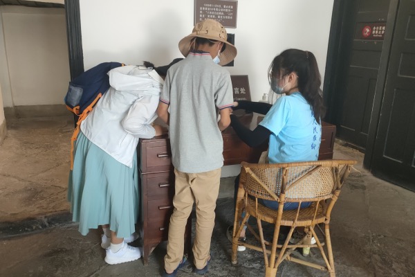 为了解红岩的文物保护和文化宣传,队员董晓玲对讲解员进行了采访。据了解,工作人员会定期核查修复馆藏文物,保护加固场馆建筑,并通过展演团队巡回表演、研学、微党课等线上和线下结合的多样化方式宣传红岩精神。最后,队员们收集了游客的参观感想,一位7岁的小朋友写道:“明年我将戴上红领巾,再来瞻仰先辈们。”只有更多青少年走进红岩,体悟红岩,才能真正使红色血脉代代相传。