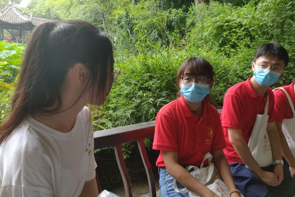 三苏祠建立在北宋文豪苏洵、苏轼、苏辙三父子的故居旧址上。实践团依次参观前厅、飨殿和启贤堂等古迹,朗读建筑上的楹联牌匾、复诵苏轼诗词,在古典韵味中体悟三苏的家训家风、感受三苏文脉,深入认识中华优秀传统文化的深厚底蕴。参观结束后,实践团偶遇同在重走总书记四川考察路线的的四川大学研学团成员。针对优秀传统文化传承问题,研学团代表表示,从旅游管理专业的角度,以三苏文化为例,旅游的方式可以弥补传统文化宣传教育的不足。此外,通过采取元宇宙的模式推广传统文化,游客体验感得以大大增强。
