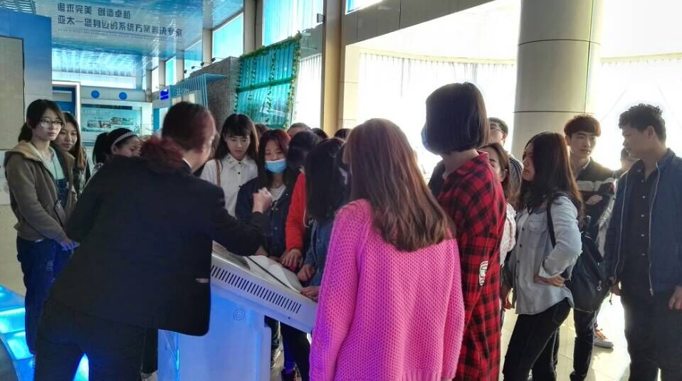 3月29日上午,2015级高职人力资源管理专业学生在任课教师带领下步行到亚太集团进行参观。在CIS展馆中,通过两名接待人员的介绍,学生们了解了德州亚太集团有限公司是以中央空调为主、投资高等教育、洁净设备等多元化大型企业集团。公司以中央空调起步于1994年,已取得机电安装一级资质、净化工程二级资质等。十几年拼搏,已经从生产简单的末端设备发展为设计、制造、安装由主机到末端全套设备的大型中央空调企业,并延伸到复合材料、通风设备等几十个门类的相关产品。学生们通过实地观摩,更加直观清晰了解到企业的基本概况和企业文化对企业的重要作用,为以后的进一步学习奠定了良好的基础。