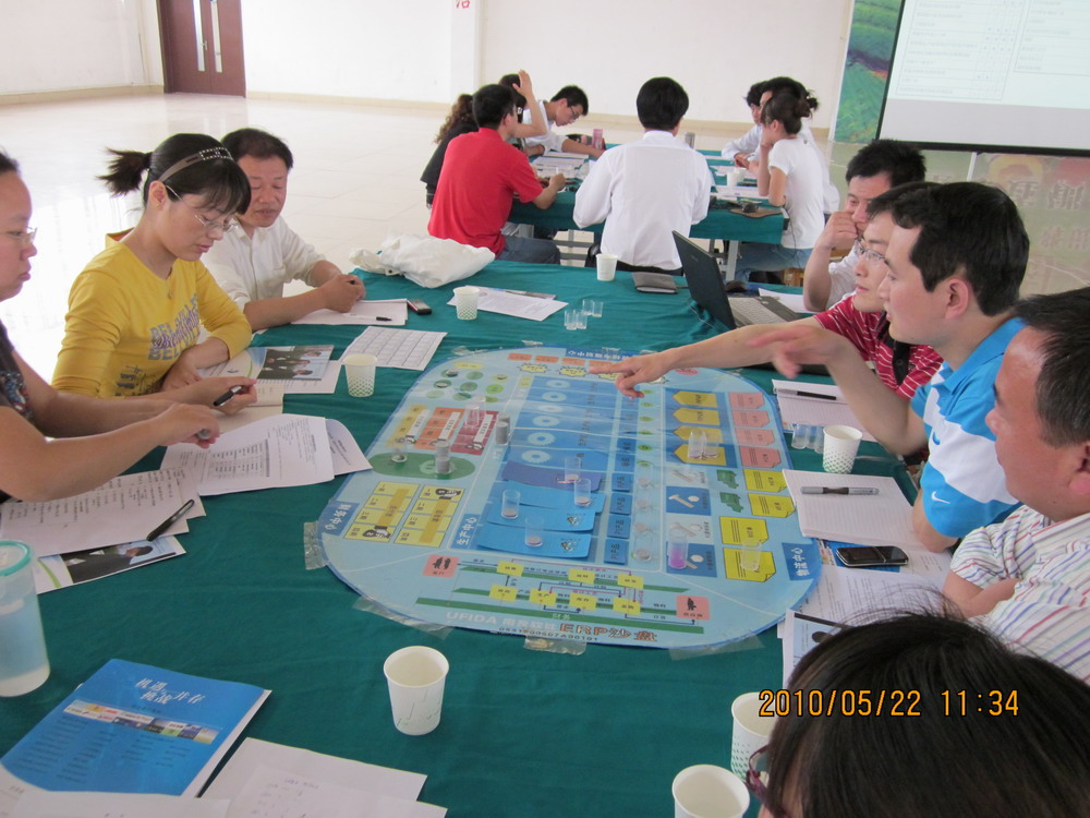 本次培训共48名教师,随机组成6组组建虚拟公司,进行经营对抗。各小组自行组建CEO、CFO、 CMO、COO、CPO等企业运营团队,经过4个年度的模拟经营,6个组(公司)经营业绩各有不同:有的企业在运营团队的领导下,业绩良好;有的企业由于经营不善资不抵债而倒闭提前出局;还有的公司在不断地亏损中。但其中的三家公司在全体成员的努力下逐渐扭亏为盈。