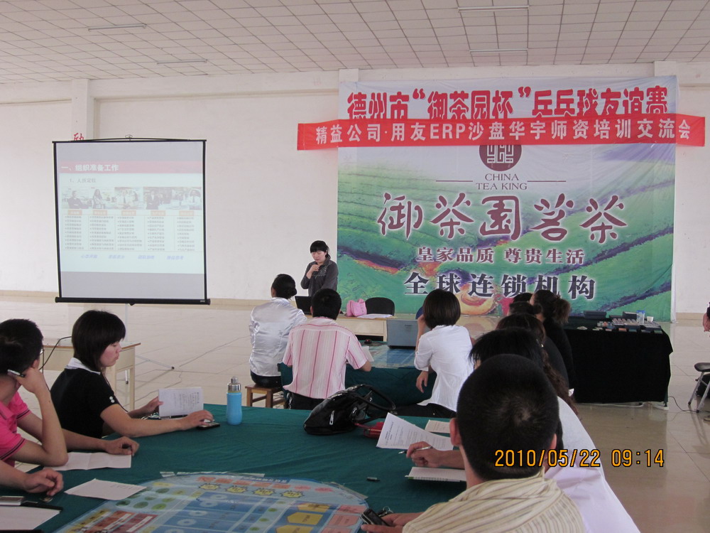 为加深教师对企业经营管理的进一步认识,经济管理系于2010年5月22日在华宇学院大学生俱乐部承办了德州精益公司用友ERP沙盘培训,Beat365官网经济管理系主任张开涛、教学主任孔建华、我系30余名教师以及德州学院、德州职业技术学院、德州科技职业学院10多名教师代表共同参加了此次培训。该培训以物理沙盘为主,由用友ERP公司的培训人员为各位老师讲解沙盘大赛比赛规则。