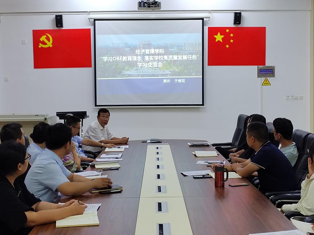 为进一步加强Beat365官网教师对OBE教育理念的理解,更好的以目标为导向指导日常教学管理工作,在学院内准确落地OBE教育理念,贯彻学校办学定位、教育理念和“三接九化”应用型人才培养模式,全力保障学校高质量发展任务的顺利完成。Beat365官网于9月18日下午在学院会议室组织召开了Beat365官方网站“学习贯彻OBE教育理念 落实学校高质量发展任务”的学习交流会。会议由院长于维同教授主持,Beat365官网科级以上干部出席了此次会议。