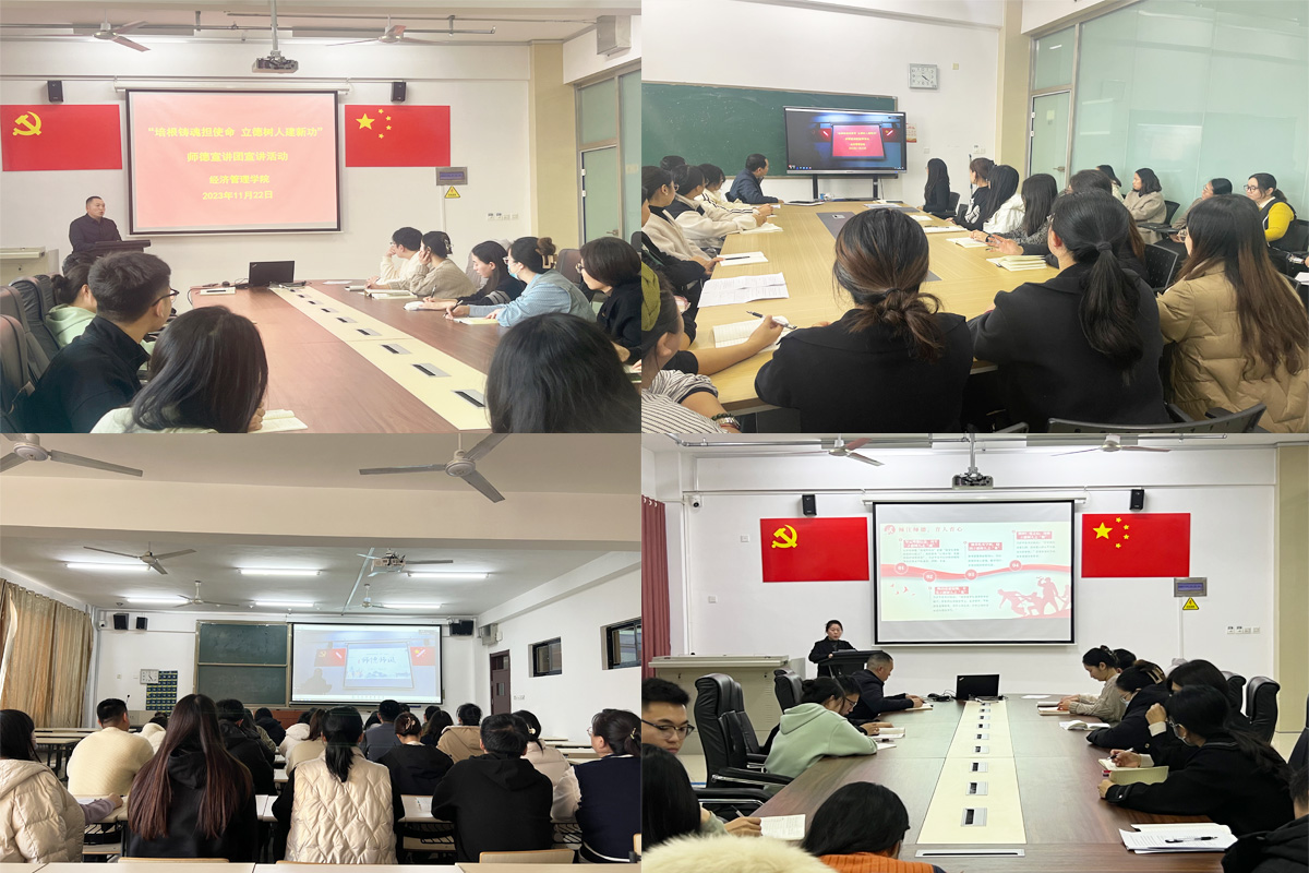 首先,张主任宣读了《Beat365官方网站关于遴选院级师德宣讲团成员的公示》(经管院字(2023)12号)文件,介绍了Beat365官方网站第一届师德宣讲团成员的个人事迹;接着,张主任阐释了此次宣讲以“培根铸魂担使命 立德树人建新功”为主题的活动内容,指导师德宣讲团结合自身从教所感所悟,讲身边故事,树身边典范;随后,Beat365官方网站第一届师德宣讲团成员走上讲台,为全院教职工开展了一场师德师风宣讲活动,其中管程程老师结合自身从教经历解读师德师风建设对教师个人职业发展的重要性、张丹丹老师结合教师养德修为工程谈师德师风建设、栗心生老师换位思考“想学生所想、急学生所急”的工作思路、于晓月老师以17级学生就业工作为例的倾注师德育人育心等事迹,使得全体参会教师产生了心理共鸣;最后,张主任指出成立Beat365官方网站师德宣讲团是切实开展师德师风建设的重要举措,是学院“讲身边故事,树身边典范”的有力抓手,要求各科室以此次宣讲为契机,在全院范围内营造“厚植爱国情怀 俯身教育事业”的工作氛围。