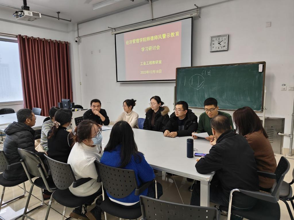 2023年12月份,工业工程教研室举办了教师警示教育活动,旨在提高教师的职业道德素养,增强廉洁从教意识,推动工业工程教研室各项工作的顺利发展。