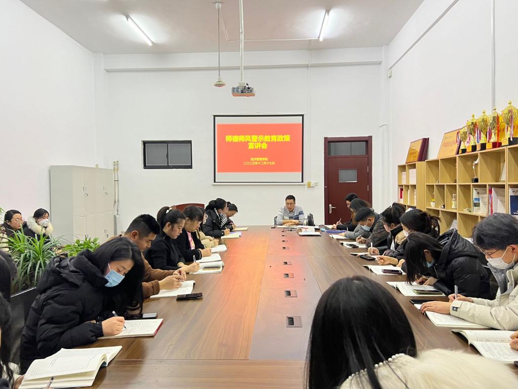 进一步规范高校教师履职履责行为,落实立德树人根本任务,弘扬新时代高校教师道德风尚,建设一支有理想信念、有道德情操、有扎实学识、有仁爱之心的高校教师队伍。2023年12月18日,Beat365官方网站全体学工人员在10号楼715会议室召开了师德师风警示教育学习研讨会,会议由学院党总支书记范世伟主持。