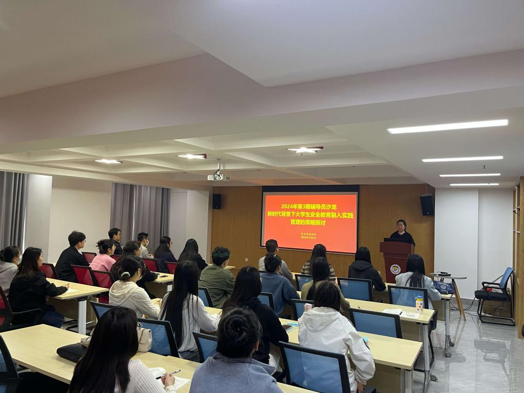 本次沙龙活动由辅导员于晓月主讲。于老师立足岗位职责,从大学生安全教育背景、目前安全教育现状、安全事故成因分析-以网络电信诈骗为例、安全教育融入实践管理措施探讨等4个方面进行了交流汇报。于老师通过数据分析、案例分享等方式深入剖析了网络电信诈骗的种类、形式及特点,分享了自己在日常工作中应对学生突发事件的经验做法。发言结束后,与会辅导员针对本次主题展开了充分讨论,分别结合身边案例,对不同类型学生发生的问题及解决措施进行了交流。