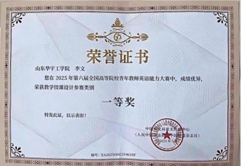 我院商务英语教研室教师刘娟、李文二人凭借卓越的专业素养与创新的教学设计,在激烈竞争中脱颖而出。教师刘娟荣获教学微课课件类一等奖,教师李文荣获教学微课设计类一等奖以及教学微课课件类二等奖。