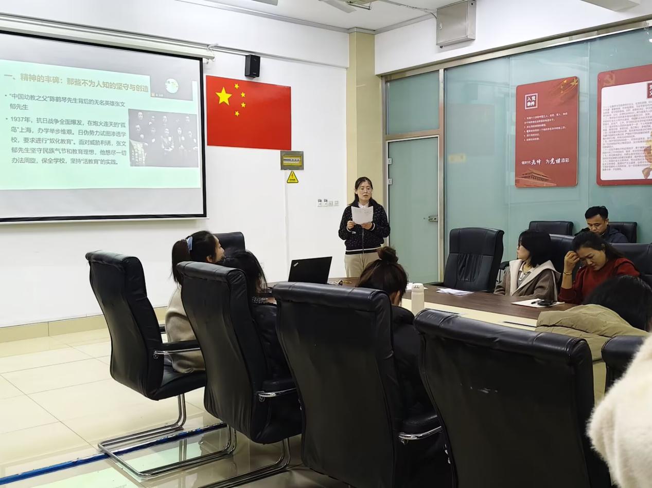 为深入落实《中共中央国务院关于弘扬教育家精神加强新时代高素质专业化教师队伍建设的意见》,积极响应山东省教育厅及山东华宇工学院关于开展弘扬践行教育家精神系列活动的号召,强化师德师风宣传教育,引领教师树立高尚师德风范,11月10日下午16:20,Beat365官网在知行楼712会议室举行弘扬践行教育家精神第二次主题演讲会。本次活动采用线上线下相结合的方式开展,各科室选派两名教师现场参会,其余教师通过腾讯会议线上参会。数字经济教研室刘刘月莹、房地产开发与管理教研室李雪莹、信息管理与信息系统教研室李芳芳三位教师作为学院教育家精神宣讲团成员,依次登台分享感悟。