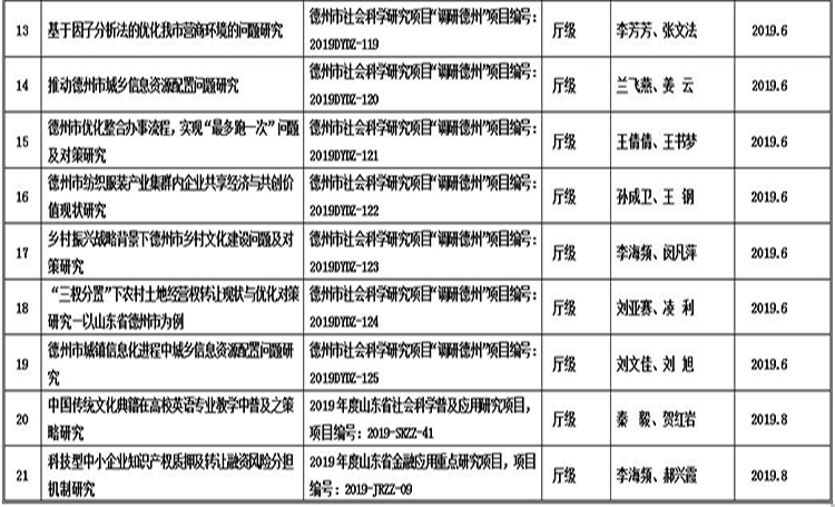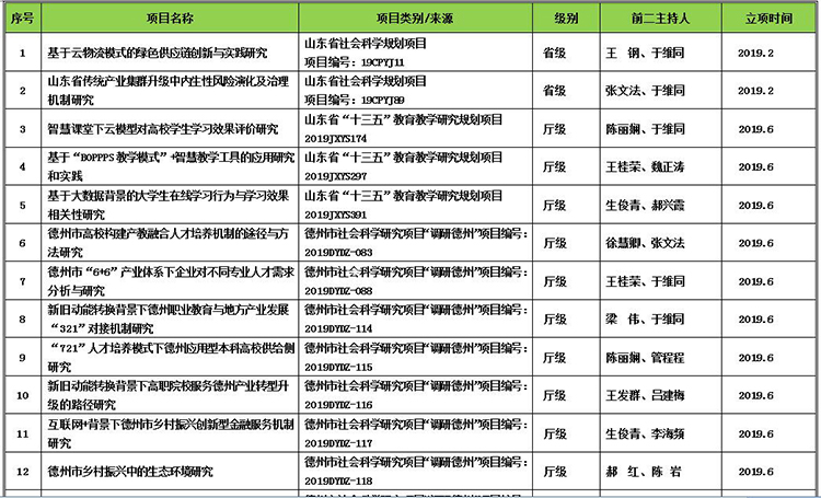 Beat365官方网站2019年立项的省、厅(市)级以上项目