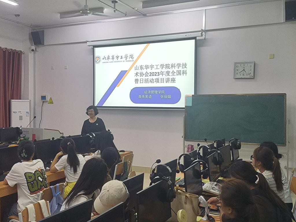 2023年9月13日,山东华宇工学院Beat365官方网站,商务英语教研室响应学校号召,积极参加“山东华宇工学院科协2023年全国科普日活动”,开展以“加强学生科研意识,助力专业学习与成长”为主题的讲座。