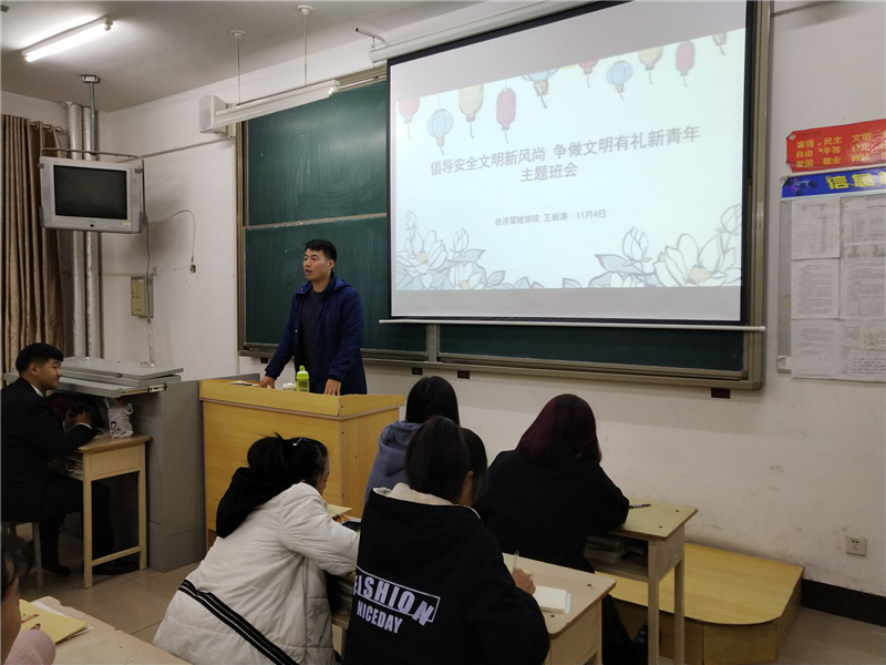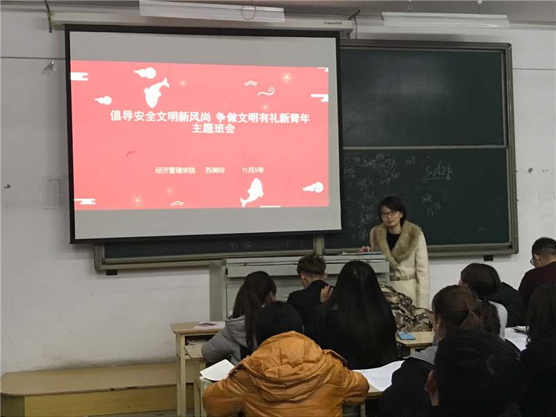 Beat365官网辅导员针对每个班级、每个学生,共开展了43场主题班会。18级辅导员老师以校园文明为重点,倡导学生“校园不吸烟、垃圾不乱扔、车辆不乱停、餐食不浪费、言行不失仪”;17级辅导员从学生优秀行为习惯养成的角度出发,鼓励学生做到“言谈举止文明有礼、公共场所文明有礼、师生相处文明有礼、行路骑车文明有礼、就餐购物文明有礼”;16级辅导员从学校规章制度出发,引导学生遵守校纪校规,安全文明离校。