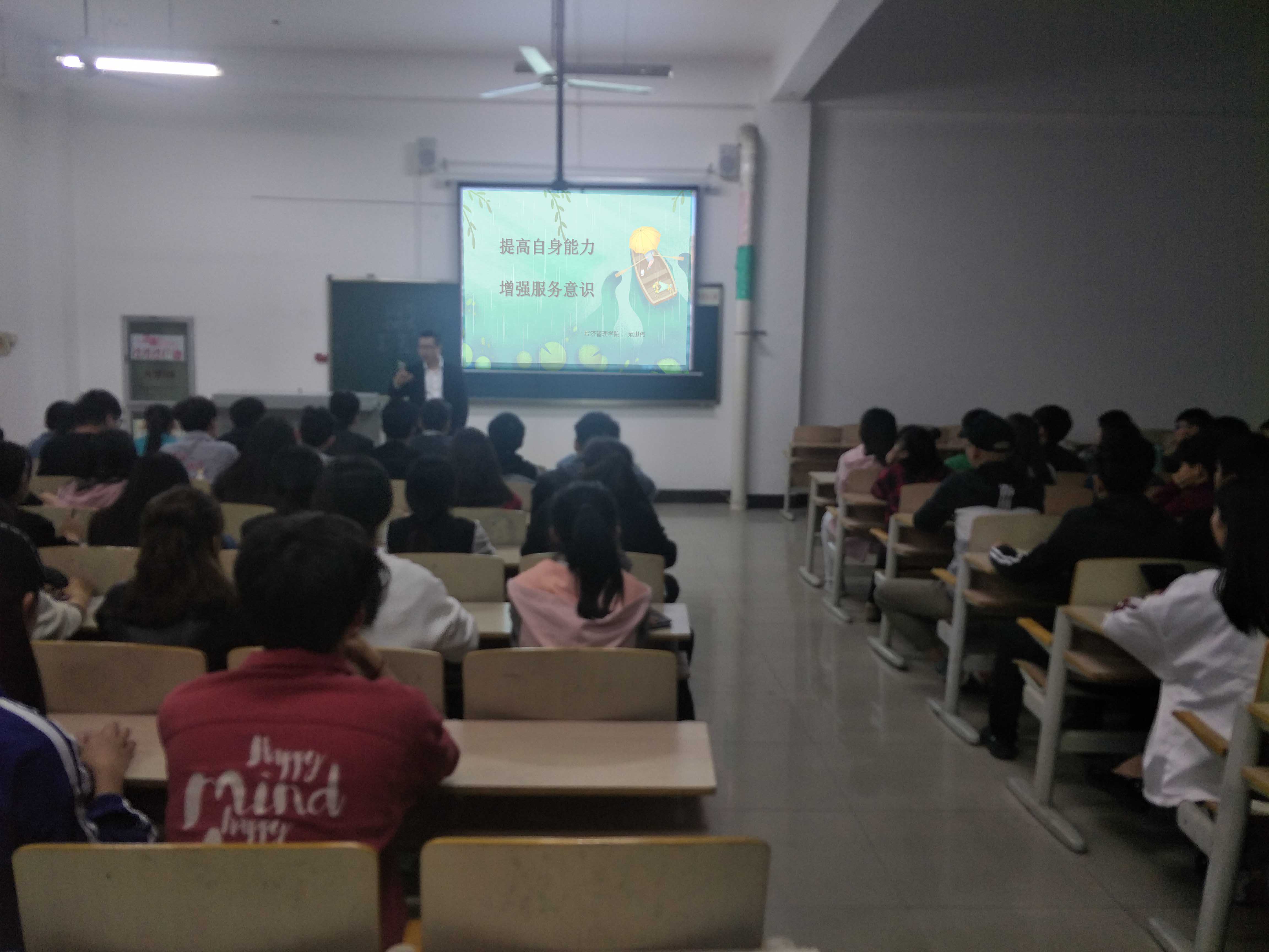 为了进一步提升Beat365官网团学干部的工作能力和热情,2018年3月27日晚在10号楼710教室,由Beat365官网党支部书记范世伟进行了“提高自身能力、增强服务意识”为主题团学干部培训。培训过程中秩序井然,严肃有致,共有156名学生干部参加。