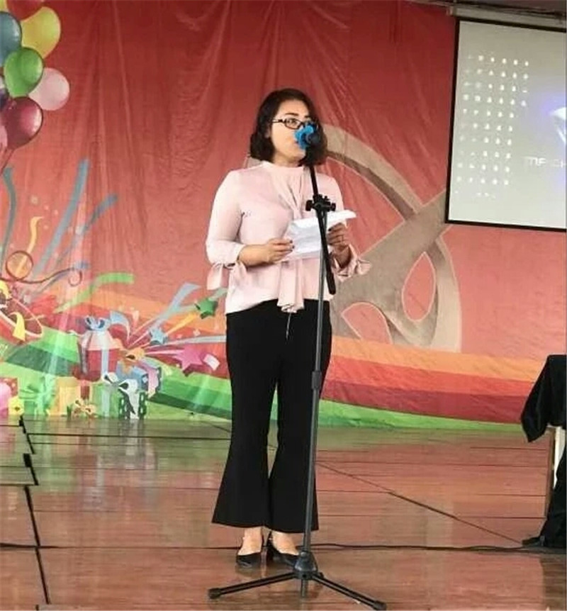 然后是新生代表于佳琪同学上台讲话,她表示在大学生活中定会:谨遵梁校长的教诲,学会学习,学会健康生活,学会独立思考,学会清晰表达,学会和谐共处,尽快适应新的大学生活,树立远大的奋斗目标。