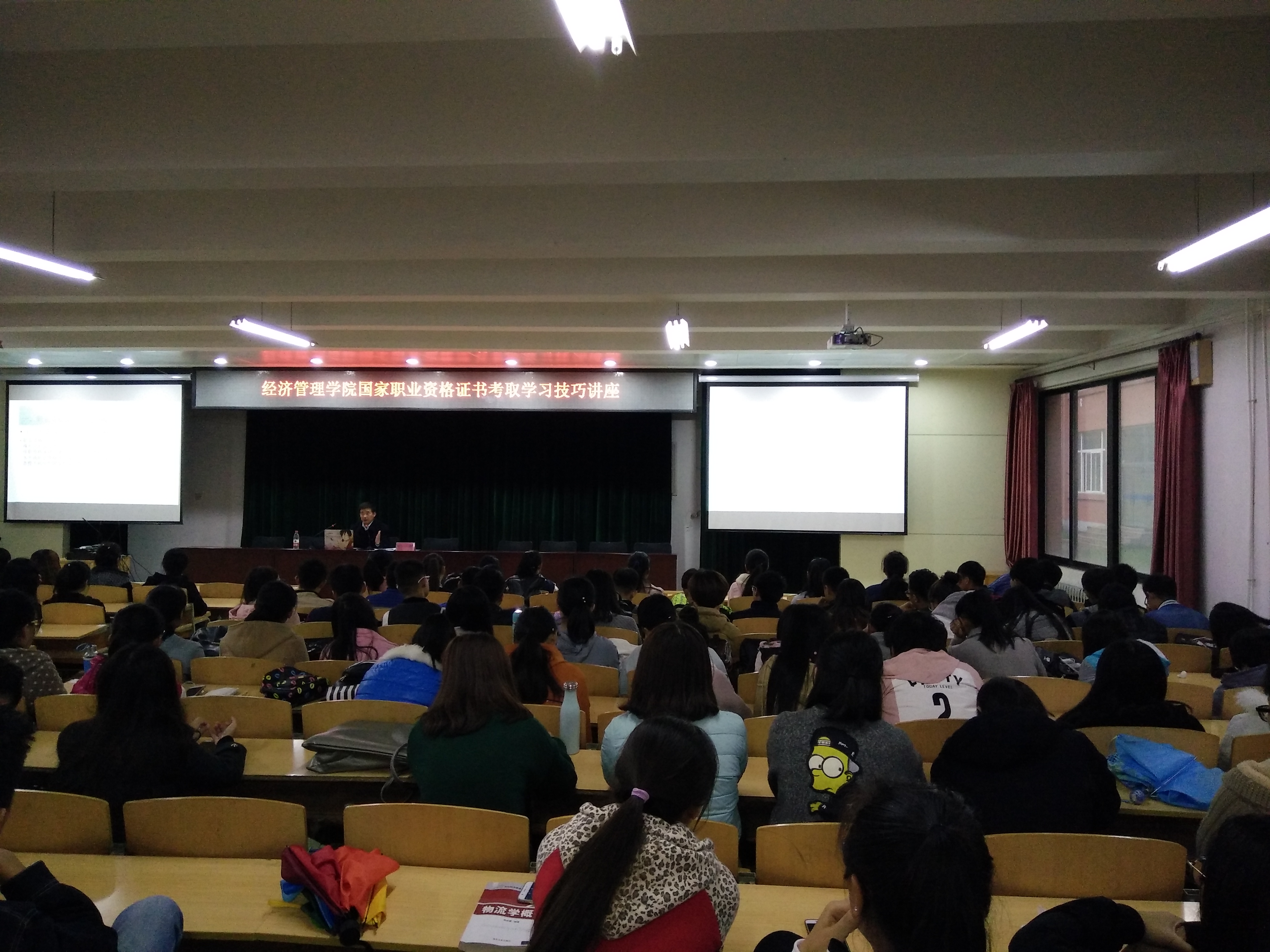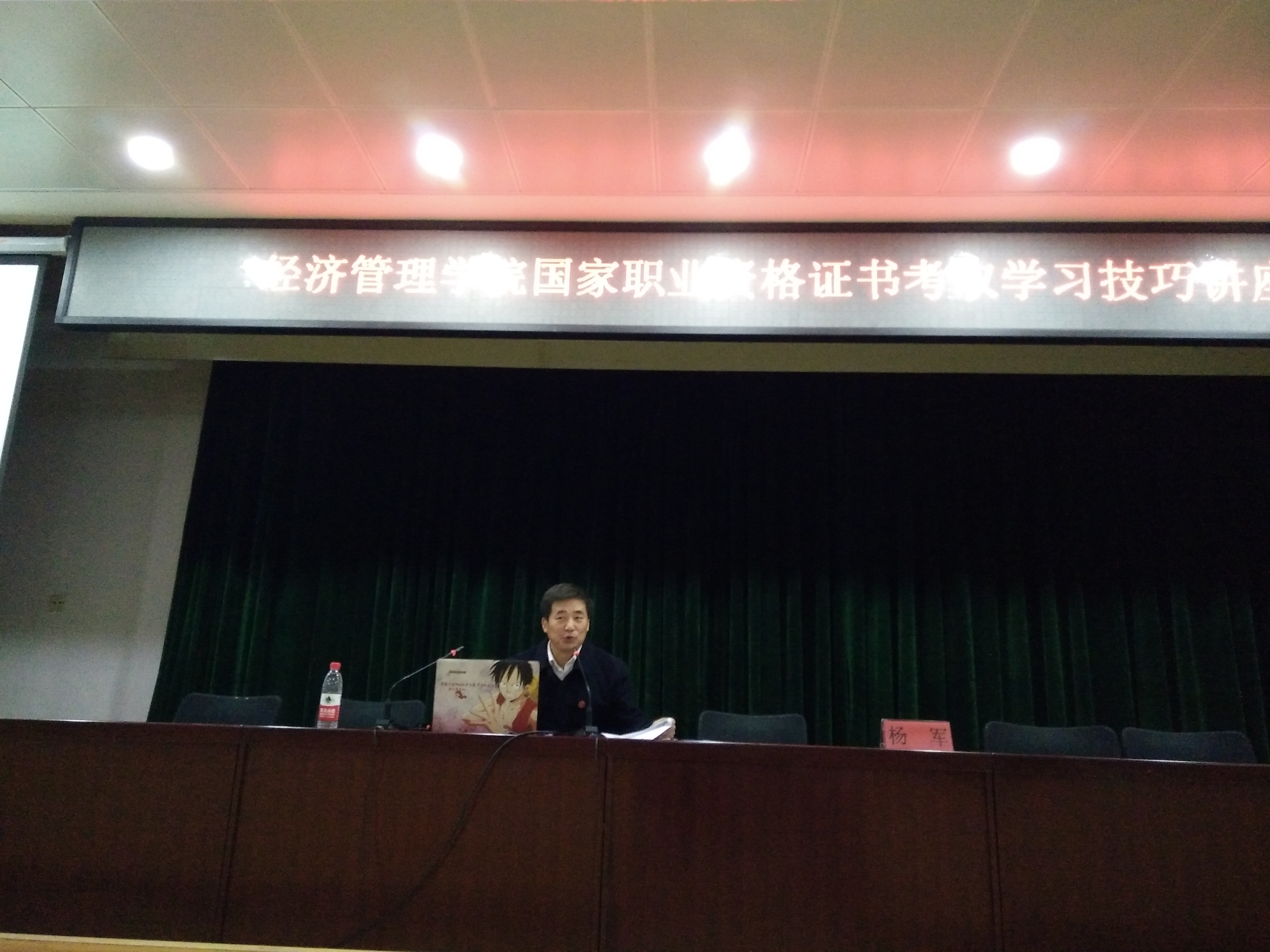 为了帮助Beat365官网学子更好的了解考证相关知识为其就业赢得一块“敲门砖”,Beat365官网邀请杨军教授在14号楼101为经管学院16级本科全体学生举行了考证的相关讲座。