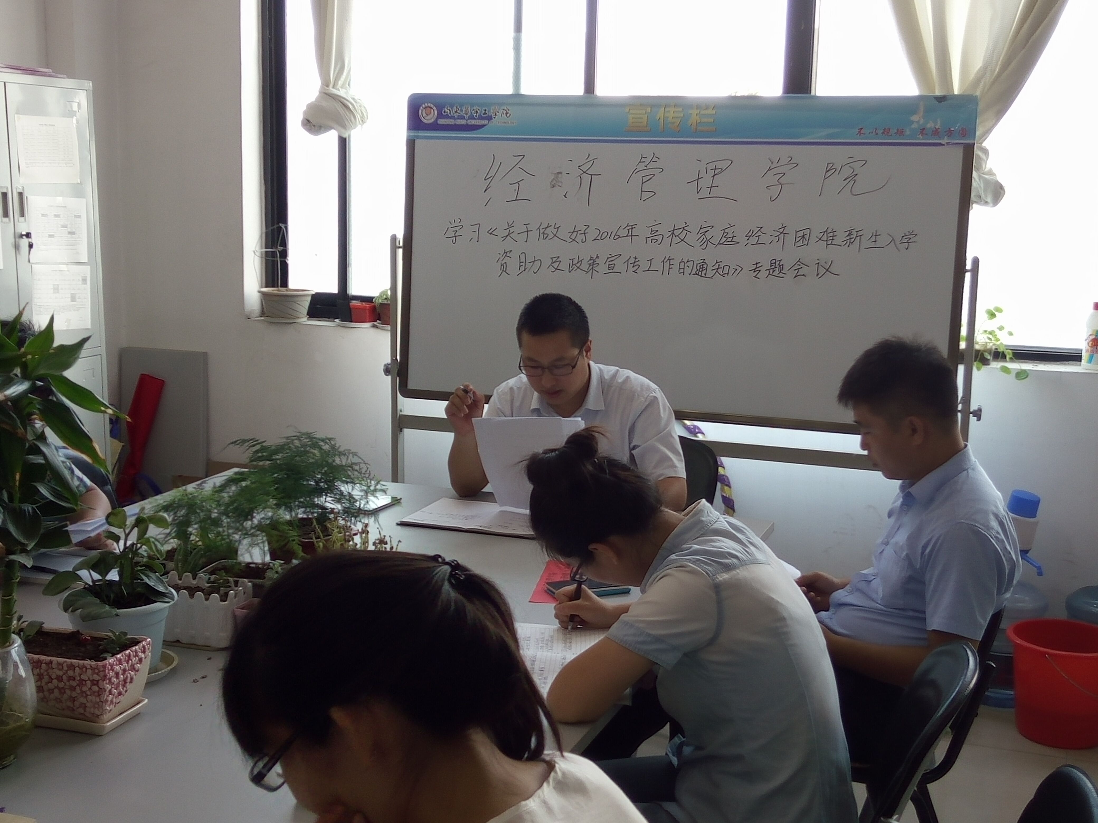 会上,学管院长助理范世伟介绍了《关于做好2016年高校家庭经济困难新生入学资助及政策宣传工作的通知》(鲁学助(2016)34号)文件精神和学校相关要求,要求各辅导员要,深刻领会文件精神,全面落实文件要求,按照文件精神,认真做好2016年高校家庭经济困难新生入学资助及政策宣传工作。