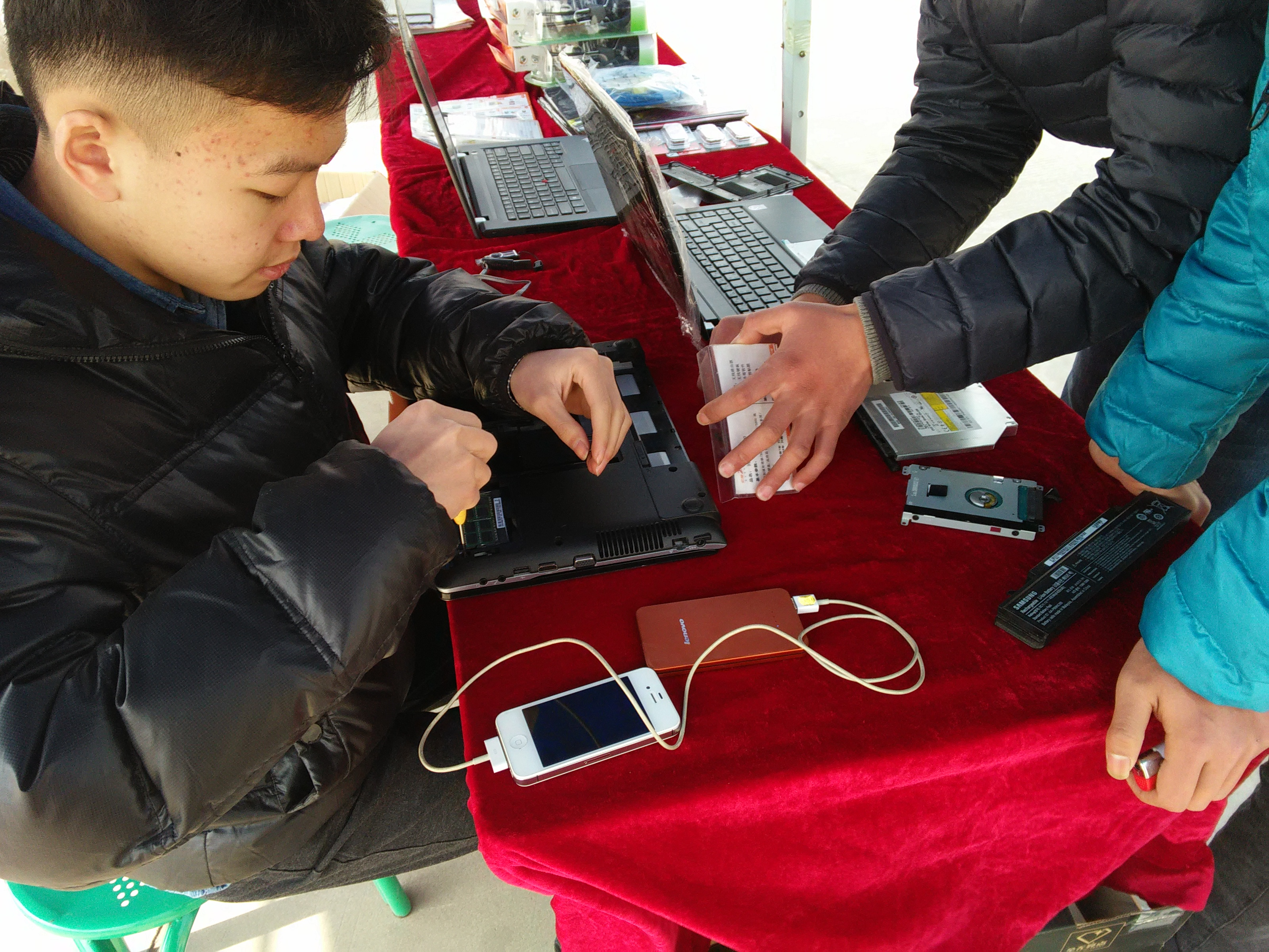 2015年3月14日、15日两天,经济管理系团总支携手亿维数码广场走进学院,开展“雷锋服务月,电脑免费修”活动,为全院师生免费提供了电脑清理、维修服务。