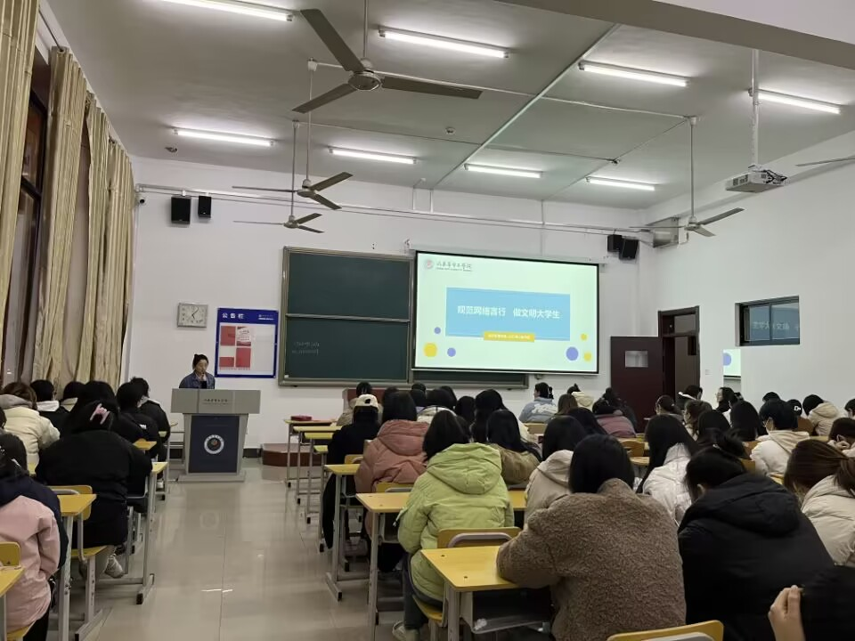 本次主题班会活动由各班级辅导员负责组织开展。班会伊始,辅导员对当前的互联网大环境进行了分析,阐述了网络是一把双刃剑。班会过程中引用了多个大学生真实的案例强调了网络不是法外之地,警醒学生们要正确辨别网络信息,知法守法,文明上网,理性发言。最后辅导员们从如何做到网络言行规范提出了几点建议,倡导同学们要遵守网络文明公约,争做文明大学生。
