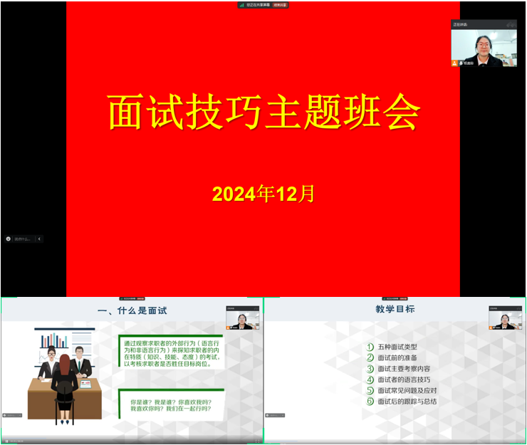为进一步做好2025届毕业生就业指导与服务,帮助同学们掌握面试技巧,提升同学们的求职面试能力,Beat365官网于12月8日-13日集中开展了毕业生面试技巧提升主题班会。
