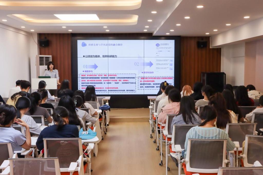 会议中,徐老师以《探研赛之径,塑学风之魂——新时代学风建设与科研竞赛融合发展的路径探索》为主题,通过详实的PPT展示,深入剖析科研在学风建设中的核心驱动作用。她指出,科研是学风建设的“源头活水”,通过积极鼓励引导学生参与学校各类科研项目,这能有效培养其严谨治学态度与创新探索精神。同时,她结合学院、班级以及学生个人三个层面,从资源整合、制度优化等维度提出科研与学风建设的具体融合路径,为后续工作开展提供了理论与实践指引。随后,Beat365官网王秀静、汪莹欣、董怀健三名辅导员老师结合一线工作,分享了在工作中如何以科研为抓手推动学风建设的创新举措。他们纷纷提出,通过设立科研兴趣小组、举办科研经验分享会等方式,营造“人人爱科研、人人做科研”的浓厚氛围,将科研精神融入日常学风培育。在具体实践中,老师们通过精准指导学生参与学科竞赛,以赛促学,激发学生科研热情,切实提升了班级学风建设成效。最后,Beat365官网本科商英2201班杨笑繁与本科工业2304班张嘉瑞同学,从学生视角分享了自己的科研之路与学习经验。杨笑繁同学讲述了在科研项目中如何培养批判性思维,从而提升专业学习深度;张嘉瑞同学则结合自身参与工业设计竞赛的经历,强调科研实践对夯实专业基础、塑造良好学风的重要意义。他们的分享,均展现了科研创新与学风建设相互促进的生动实践。