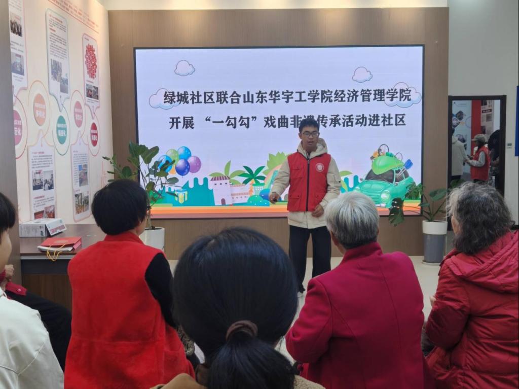 为大力弘扬中华优秀传统文化,激活非遗戏曲的当代生命力,2025年10月25日,我院组织20余名志愿者走进绿城社区,开展了一场以“传承‘一勾勾’戏曲,续写非遗新篇”为主题的非遗传承实践活动。活动旨在通过志愿者和居民同台排练经典选段,让“一勾勾”戏曲的独特魅力深入人心,同时引导青年群体成为非遗文化的学习者与传播者,助力传统艺术在新时代焕发新光彩。
