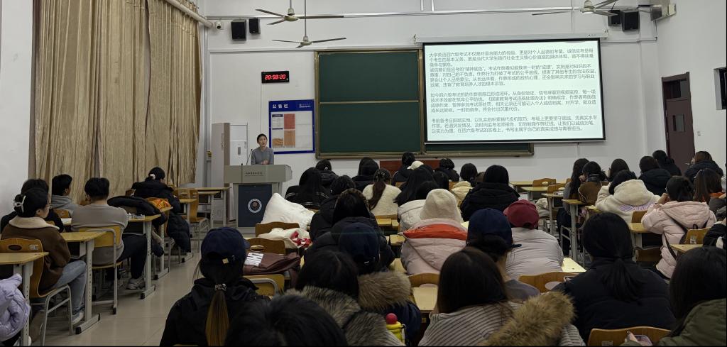 为强化学生诚信应考意识,严明考场纪律,保障全国大学英语四、六级考试平稳有序进行,12月11日至12日,济管理学院组织全院师生,集中开展“诚信应考严守底线全国大学英语六级考试专项诚信教育主题班会,实现教育覆盖无死角。