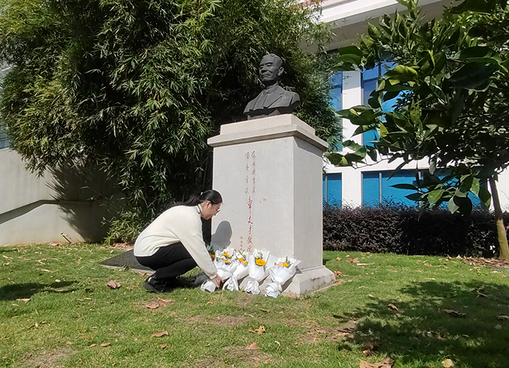 德赢vwin体育官网登录举行纪念章文才先生诞辰117周年铜像献花仪式