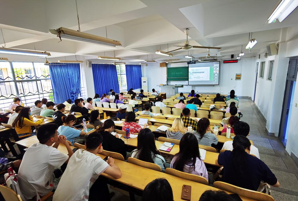汪阳东研究员作了题为《特色林木资源育种》的报告,分别从我国特色林木资源育种与产业、山苍子育种科研案例两个内容介绍了特色林木资源的类型、需求、产业发展、育种的方法与体系,以及山苍子育种与产业融合发展的科研经验,并与师生就相关问题进行了交流。