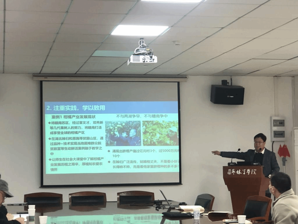 思政示范课程《现代森林培育理论与技术》主讲教师梅莉副教授从课程基本情况、思政教学目标和实施、成效等方面进行汇报,她以深度挖掘、收集整理思政案例的切入方式拓展教学内容;充分运用讨论式教学、翻转课堂的授课方式,激发学生独立思考;在理论考核中融入课程思政的内容等方式助力实现三位一体的育人目标,并最终形成了多项物化成果,指导学生发表了相关论文,该课程还作为主推的思政课登上了新华网。