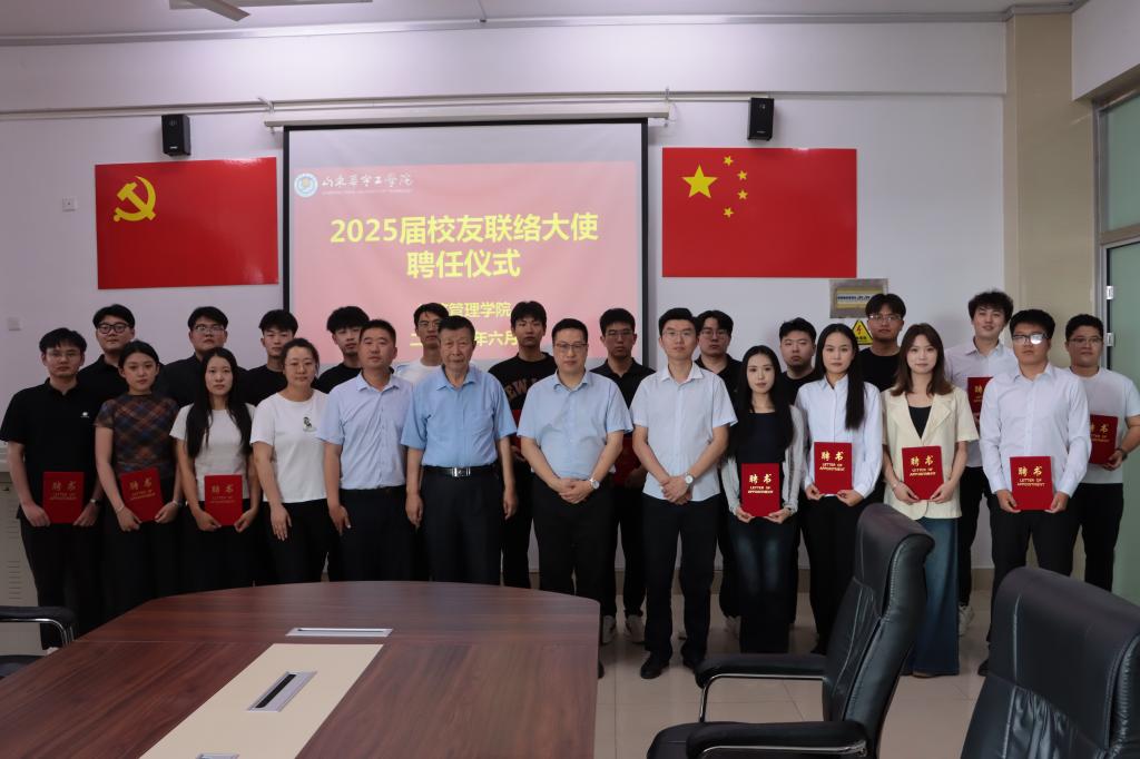 为深化校友与母校之间的情感纽带,充分激发校友在学院建设发展中的桥梁纽带作用,有力推动学院在人才培养、科学研究和社会服务等领域的高质量发展,6月17日我院在20#712会议室举行2025届校友联络大使聘任仪式。学院院长于维同、党总支书记兼副院长范世伟、学生管理科科长、团总支书记及20位2025届校友联络大使代表参加了此次会议。