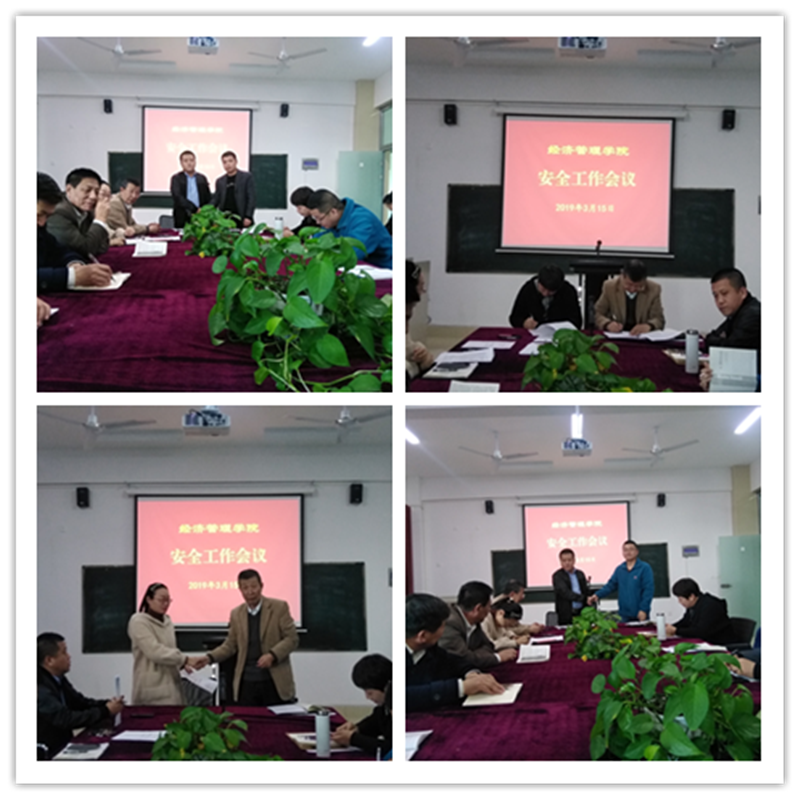 会议最后,院长于维同分别与教学院长助理戴明、实验实训中心主任刘红梅、学管科长王敏签订了安全工作目标责任书;教学院长助理戴明分别与各系部主任签订安全工作目标责任书。
