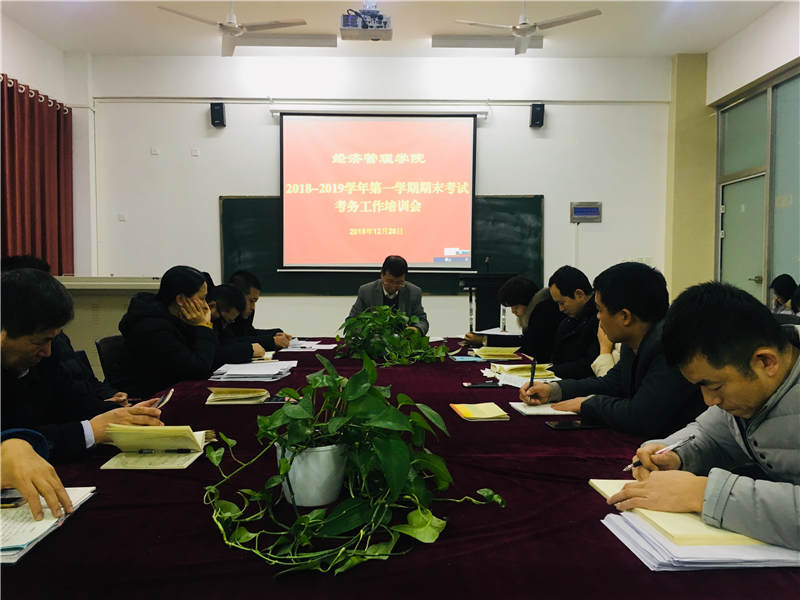 根据学校期末考试工作安排,Beat365官网统一考试时间定于2019年1月7日至9日,为保证期末考试工作顺利开展,Beat365官网召开考务工作培训会,会议由院长助理戴明主持,经管学院全体教师参加了培训会。