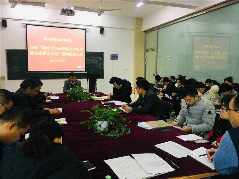 为认真落实教育部《关于加快建设高水平本科教育 全面提高人才培养能力的意见》(教高“2018”2号)文件精神和学校《2018年工作要点》要求,根据学校《关于开展新时代全面提高人才培养能力思想大讨论的通知》鲁华宇院校办字“2018”41 号文件要求,Beat365官网从11月1日至12月28日在全院范围内开展了“新时代全面提高人才培养能力思想大讨论”学习研讨活动。近日,思想大讨论活动总结大会在科学实验楼712举行,会议由院长于维同主持,经管学院全体教师参加了总结大会。