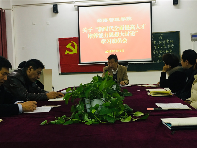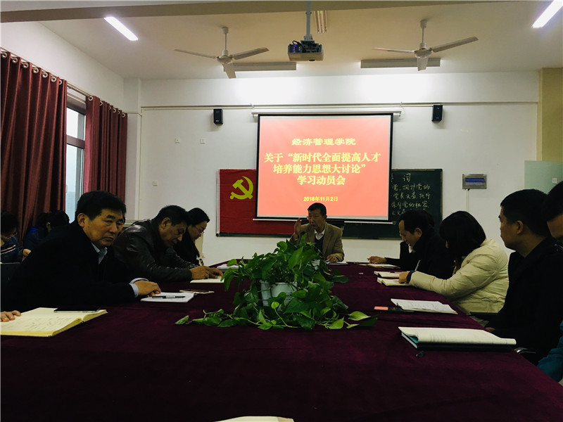 启动仪式上,院长于维同宣读了《关于开展“新时代全面提高人才培养能力思想大讨论”的学习活动方案》,明确了学习讨论的目的和指导思想,本次活动共分为四个阶段,院长于维同对各阶段学习讨论内容和时间安排做出具体安排,要求各教研室、科室和中心要提高思想认识,精心组织,合理安排;个人自学要有笔记,集体学习讨论要有记录,并做好相关材料整理、留存工作。最后,院长于维同要求全体教师做到以下几点:第一要坚持正确的办学方向;第二要强化每一位教师的立德树人意识;第三要为本科生参与科研创造条件;第四要坚持把师德师风作为教师素质评价的第一标准,切实加强师资队伍建设;第五要推动课堂教学革命;第六要及时调整专业人才培养方案,科学构建课程体系,努力培养高质量的本科专业经管人才。第七,落实学校2017-2018学年教学工作会议精神,以评促建、以评促改、评建结合、重在建设,实现本科教学水平评估达标。