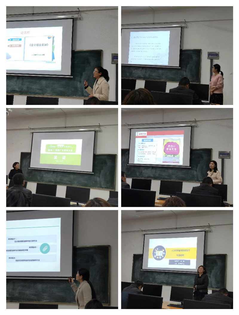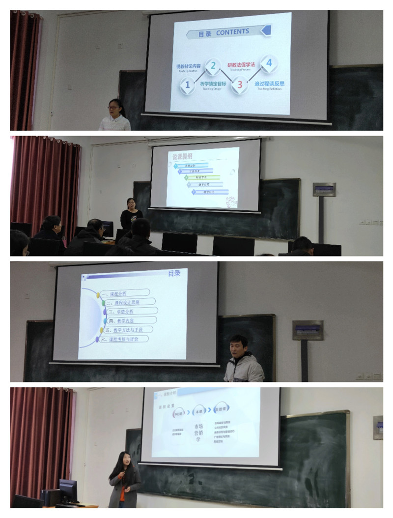 活动分为两个阶段,第一阶段为教研室层面比赛,全员参与,旨在推荐优秀教师参加院级层面说课比赛。第二阶段为学院层面比赛,11月8日,学院层面比赛在20号楼612举行,经管学院全体无工作任务教师参加了观摩和学习。本次院级比赛共有10位教师参加,经过参赛选手的激烈竞争和评委们的投票,最终推选出徐慧卿老师代表学院参加校级层面比赛。比赛最后,于维同教授、杨军教授、杨万春教授分别从课件制作、说课内容、语言运用等方面对本次参赛教师的说课进行了点评,并对全院教师提出殷切的期望。