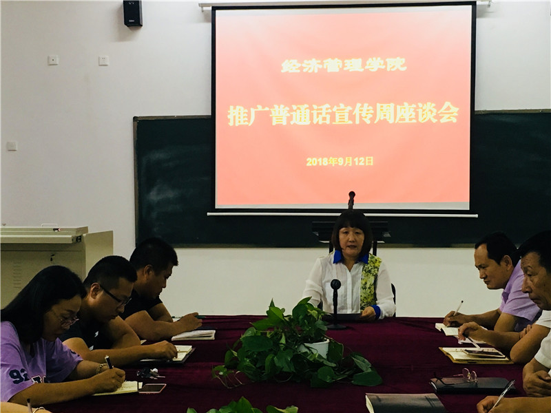 根据省语委《山东省教育厅等部门转发教育部等九部门关于开展第21届全国推广普通话宣传周活动的通知的通知》(鲁教语字〔2018〕2号)文件精神,以及《山东华宇工学院第21届全国推广普通话宣传周活动方案》的安排,Beat365官网积极举行山东华宇工学院第21届全国推广普通话系列活动,9月12日,Beat365官网组织科级以上管理人员推广普通话座谈会,院长于维同主持了会议,王桂荣老师进行了学好普通话经验交流,全体参会人员进行了热烈讨论。