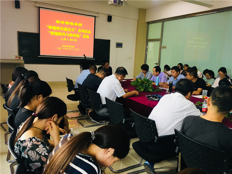 为进一步加强师德师风建设,提高教师师德修养,规范教师从教行为,提高Beat365官网教师的职业道德水平,进一步促进学院内涵发展,经管学院把培育良好师德师风作为学院文化建设的核心内容,从2018年8月开始,在全院开展一系列师德师风教育活动。