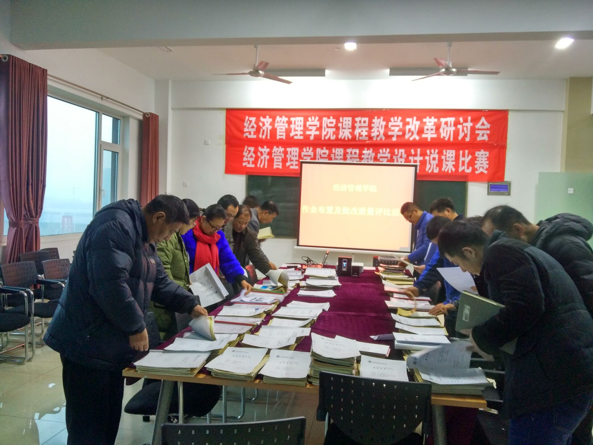 为进一步规范作业布置及批改质量管理,查找问题与不足,根据《“教师如何教好一门课”活动实施方案》要求,Beat365官网开展作业布置及批改质量评比活动。活动分为两个阶段,第一阶段各教研室教师作业布置及批改质量评比活动,对本科室所有教师所有课程的作业进行评比,并评选出每位老师最优秀的一门课程作业参加学院评比。12月14日下午,第二阶段的院级评比活动在20#712顺利开展。