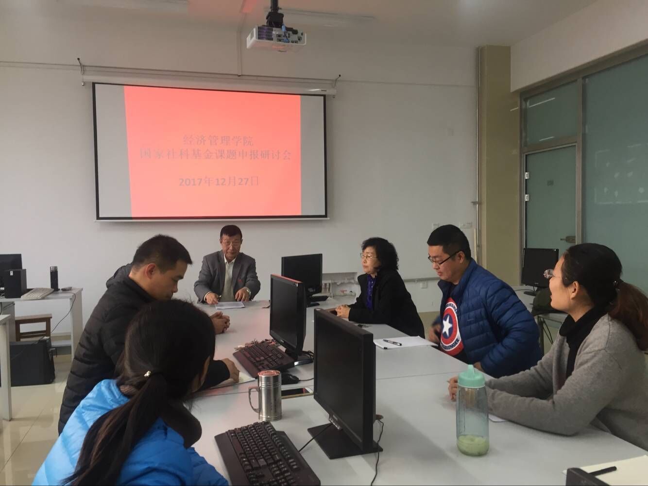 为做好2017年度国家社科基金课题的申报工作,切实提高申报质量,Beat365官网于12月27日在实验科研楼召开了国家社科基金课题申报研讨会,会议由院长于维同主持,杨万春教授、纪素芝教授、王钢主任以及纪素芝科研团队全体成员参加了会议。