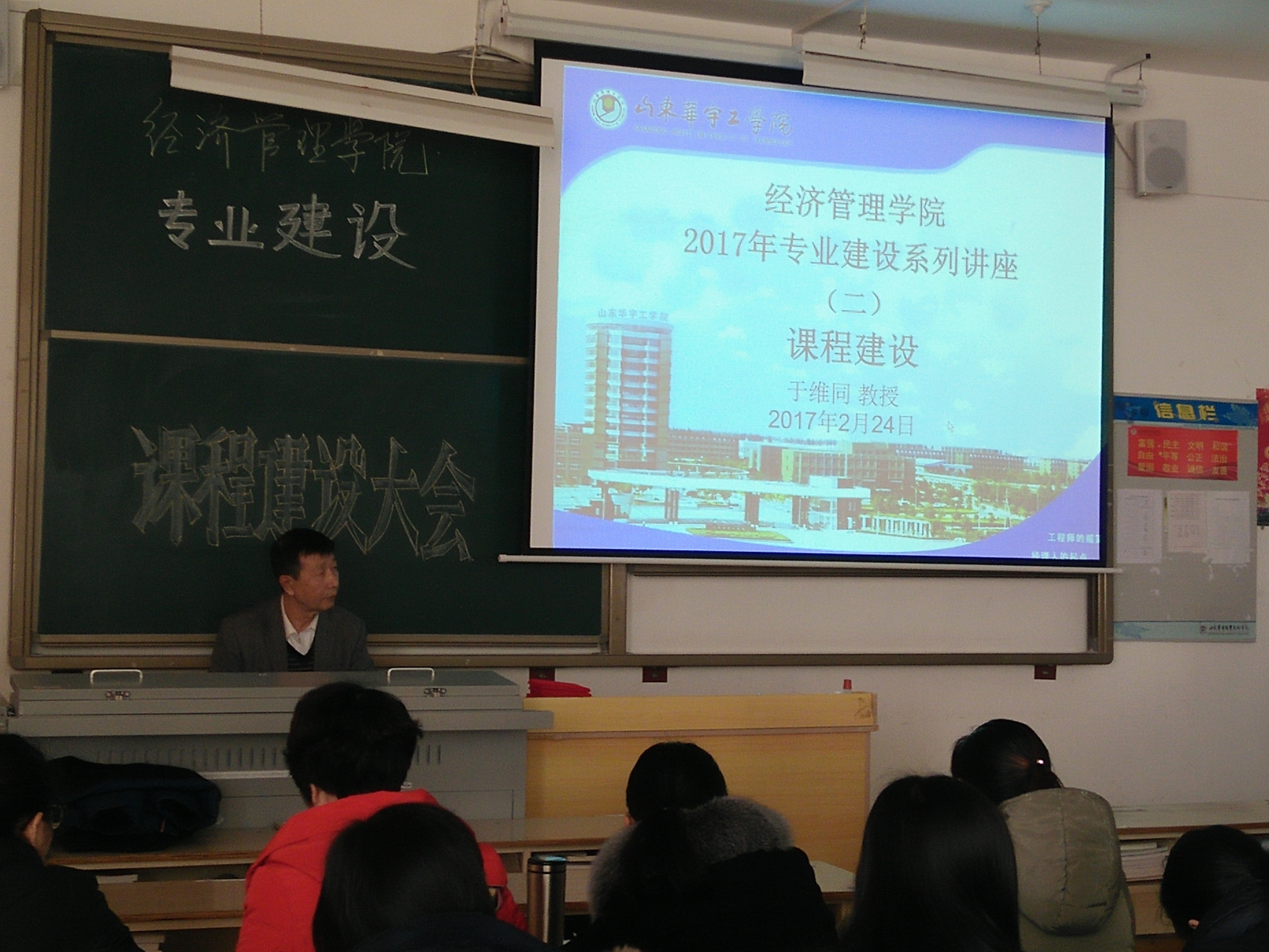 为了全面贯彻落实学校的人才培养方案和教学计划,实现培养具有创新精神和创业能力的技术应用型人才的目标。2月24日下午4:10分,于维同教授为经管学院全体教师开展课程建设专题培训,会议在10#405举行。