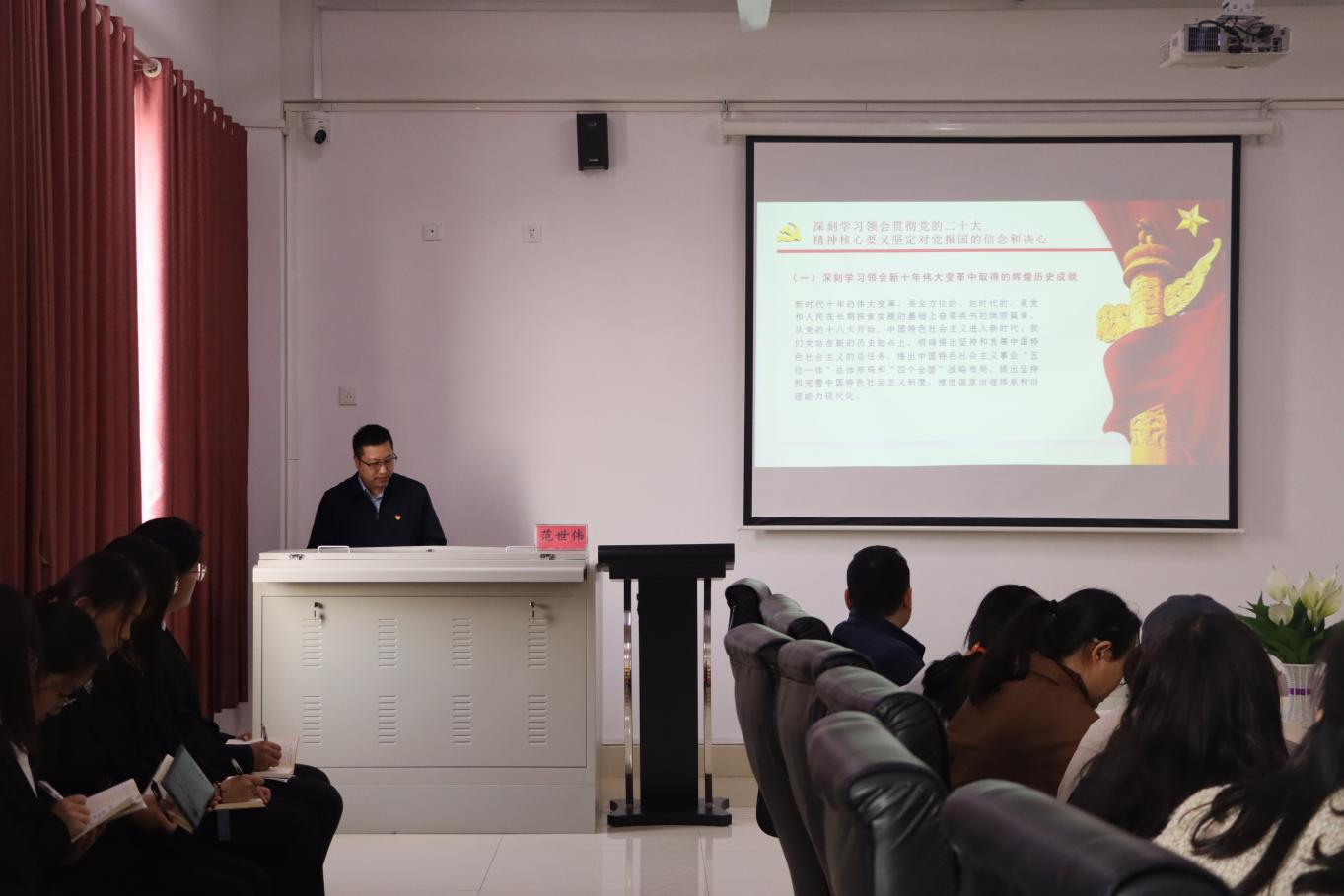 为促进党员师生认真学习领会二十大报告精神,掌握核心要义,理解精神实质,推动学习宣传贯彻党的二十大精神走深走实,3月31日,在20号楼712会议室,Beat365官方网站党总支开展了党的二十大精神学习宣贯主题讲座,邀请了党总支书记范世伟带领大家共同学习,各党支部书记、委员、党员代表、预备党员代表、入党积极分子代表参加了此次讲座。