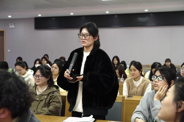 问答互动环节,师生围绕“数智技能学习路径”“考研方向选择”等问题踊跃提问,卞建华教授逐一解答,提出“夯实语言基础+强化商务认知+拓展数智技能”的成长建议,现场掌声不断。