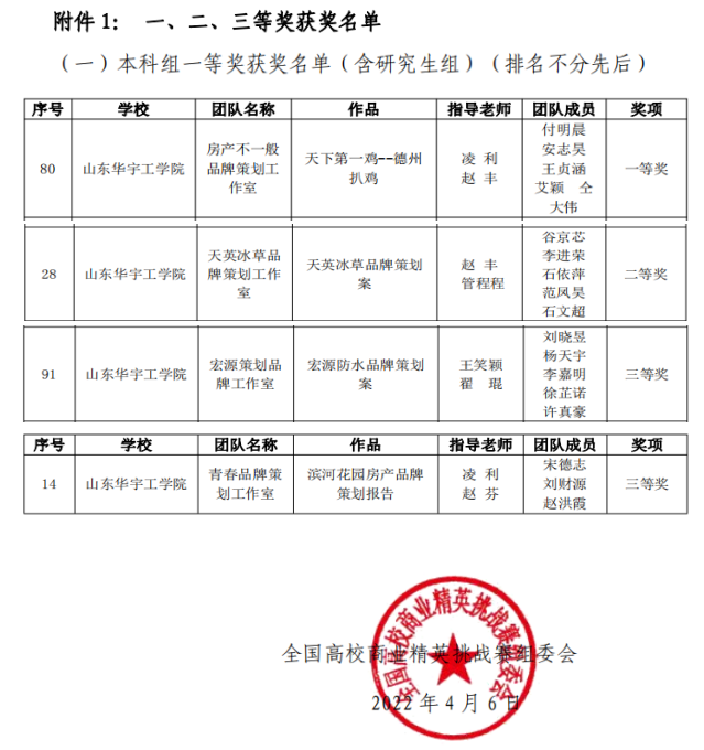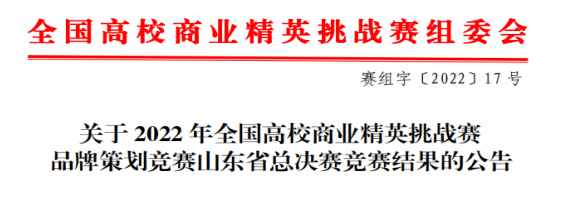 由中国国际贸易促进委员会商业行业委员会、中国国际商会商业行业商会、中国商业文化研究会和中国商业经济学会联合主办的2022年全国高校商业精英挑战赛品牌策划竞赛山东省总决赛(全国普通高校大学生竞赛排行榜赛事),于2022年4月2日落下帷幕。本次大赛共有来自全省45所高等院校参赛,共385支参赛队伍,经过角逐,Beat365官网房地产开发与管理和市场营销专业的付明晨、安志昊、仝大伟和宋德志等18名学生在此次山东省总决赛中获得一等奖一项、二等奖一项和三等奖两项的好成绩!