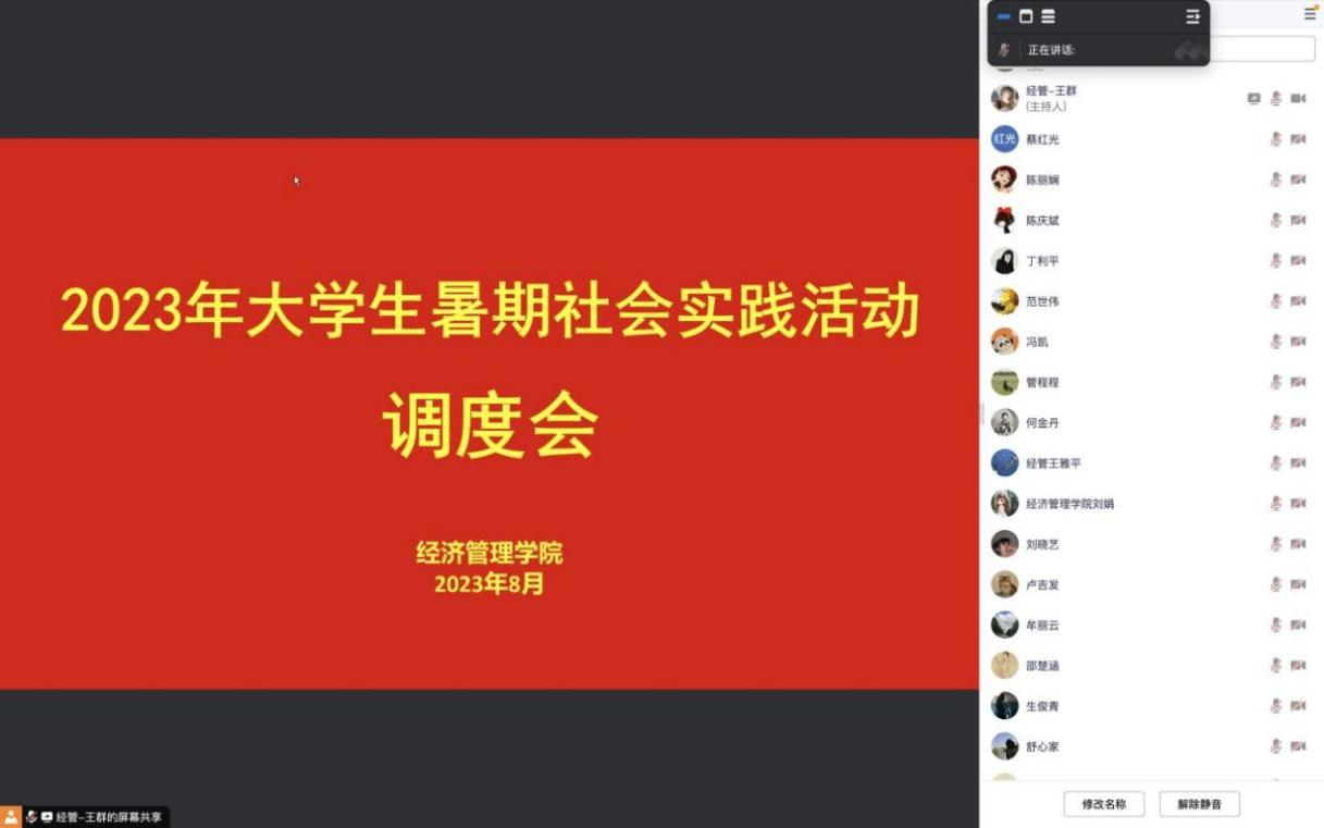 深入掌握Beat365官网大学生暑期社会实践活动开展情况,详细了解实践活动过程中存在的困难和问题,扎实推进社会实践工作顺利进行,823日上午院通过腾讯会议的形式线上组织召开2023年大学生暑期社会实践活动调度会。参加此次调度会的有Beat365官方网站党总支书记、副院长范世伟、团总支书记王群以及各团队社会实践指导教师