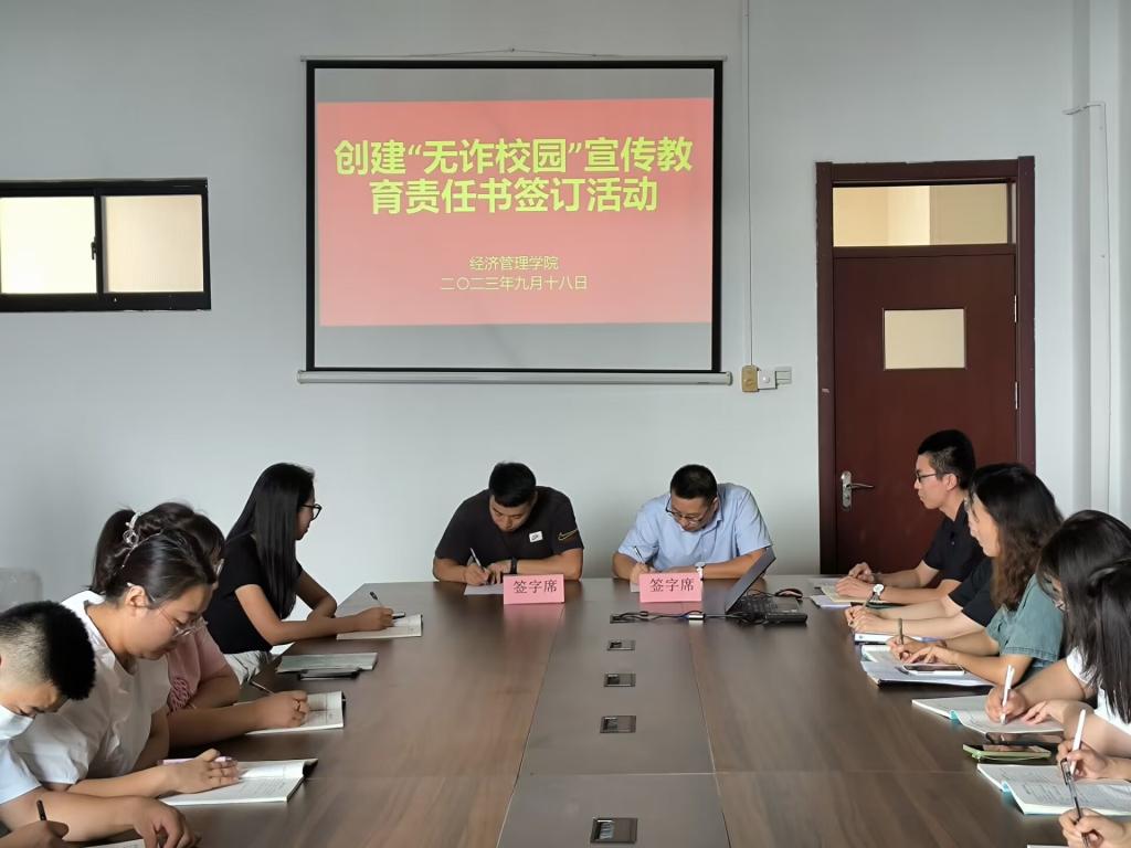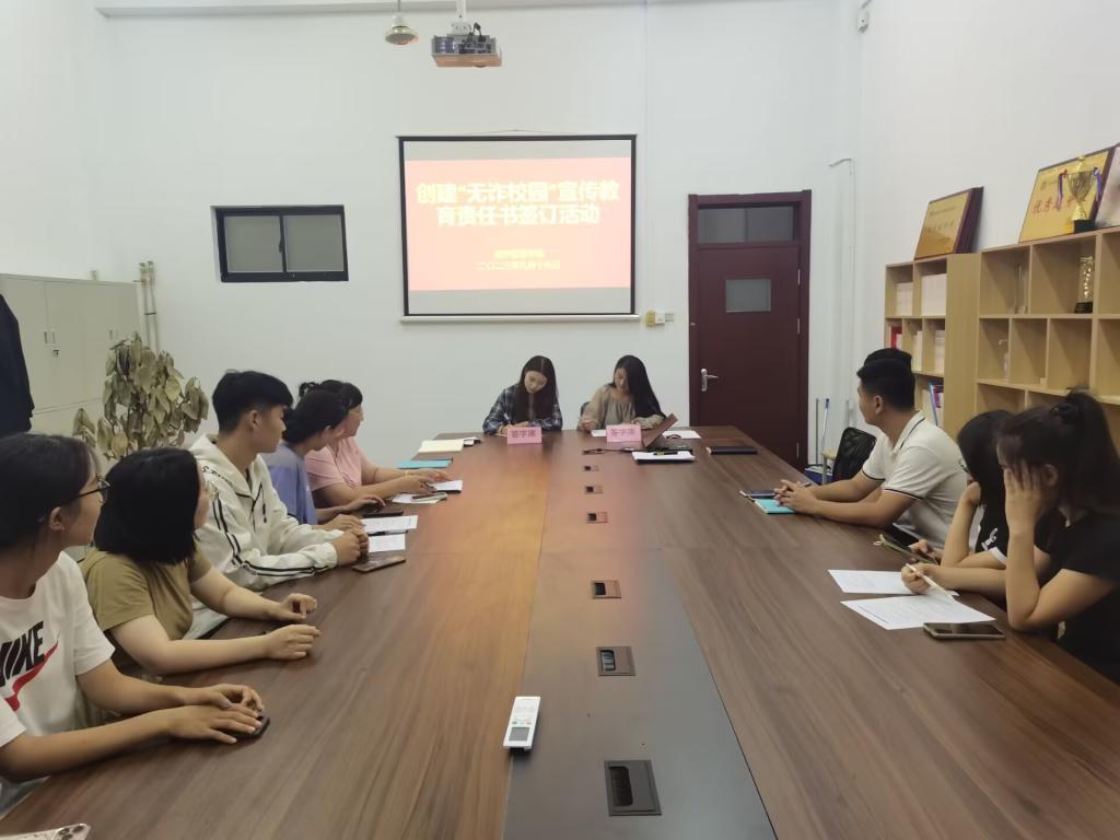 为深入贯彻落实党中央、国务院关于开展打击治理电信网络新型违法犯罪工作部署要求,充分调动Beat365官网师生参与反诈宣传教育工作的积极性和主动性。根据学校《“无诈校园”创建工作实施方案》,Beat365官网制定了《Beat365官方网站“无诈校园”创建工作实施方案》,为进一步落实方案的工作要求,9月18日,Beat365官网开展了创建“无诈校园”宣传教育责任书签订活动。