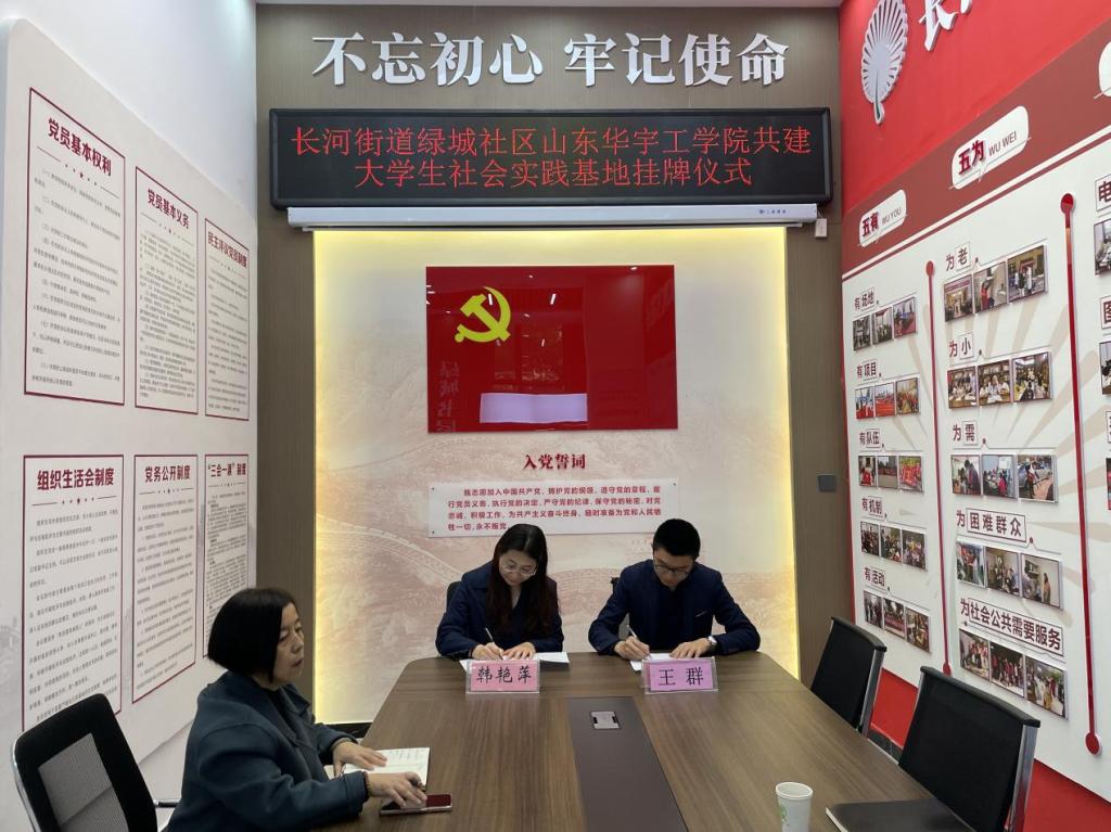 Beat365官网教师代表赴天衢新区长河街道绿城社区举行大学生社会实践基地签约挂牌仪式