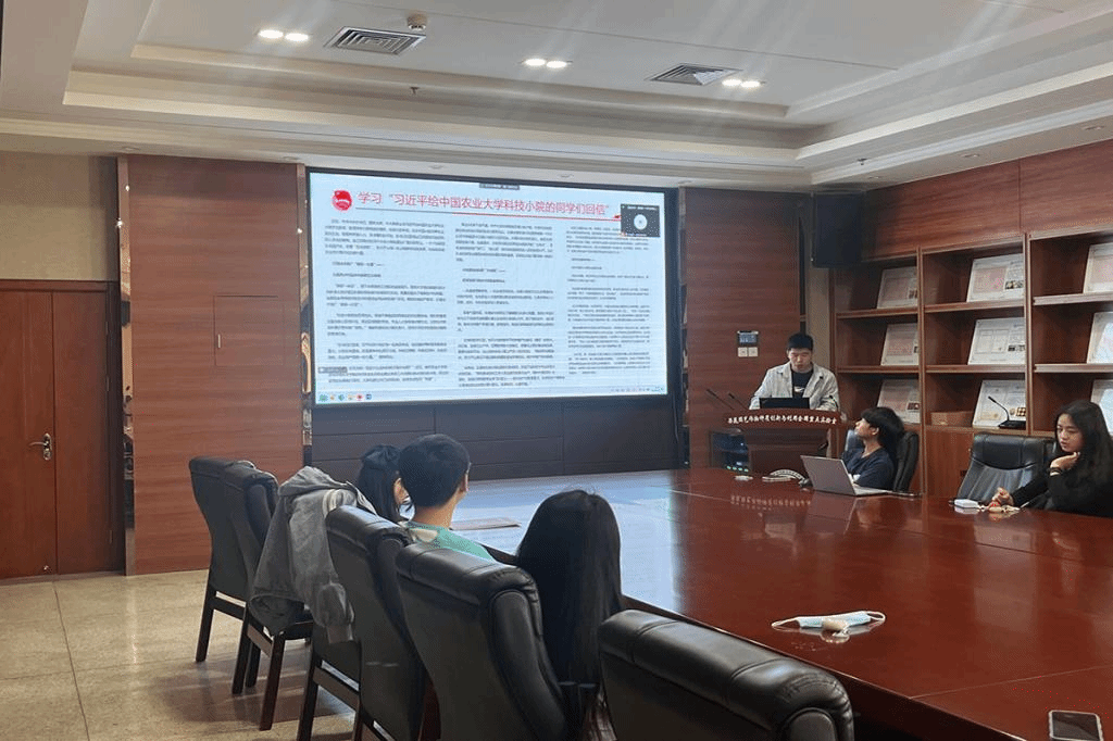 2023年59中午 2022级果树专硕1班团支部围绕习近平总书记给中国农业大学科技小院的同学们的回信内容园林南楼206会议室开展主题团日活动。会议团支书张靖宗组织支部全体团员参加短短几百字的回信内容,引发了支部同学们激烈的讨论,同学们纷纷对回信内容的理解与感悟进行分享。在张靖宗读到习近平总书记给中国科技小院的同学们的回信时,和大家就其中一个词“自找苦吃”进行了个人理解和联想的分享。张靖宗分享道:“我想到了家中长辈曾在我外出读书前经常告诫的一句话——年轻人出门在外要肯吃两样东西,一个是肯吃亏,一个是肯吃苦,习总书记用另一种说法肯定了这句话。我也深深认同在练就兴农本领的过程中,难免要吃不少苦头。但是我们正青春,我们走在了社会主义现代化建设的长途列车上,正是练就本领的好机会,此生不悔入农学,只愿以青春之我,为祖国的农业农村现代化建设贡献一份青春之力量。”