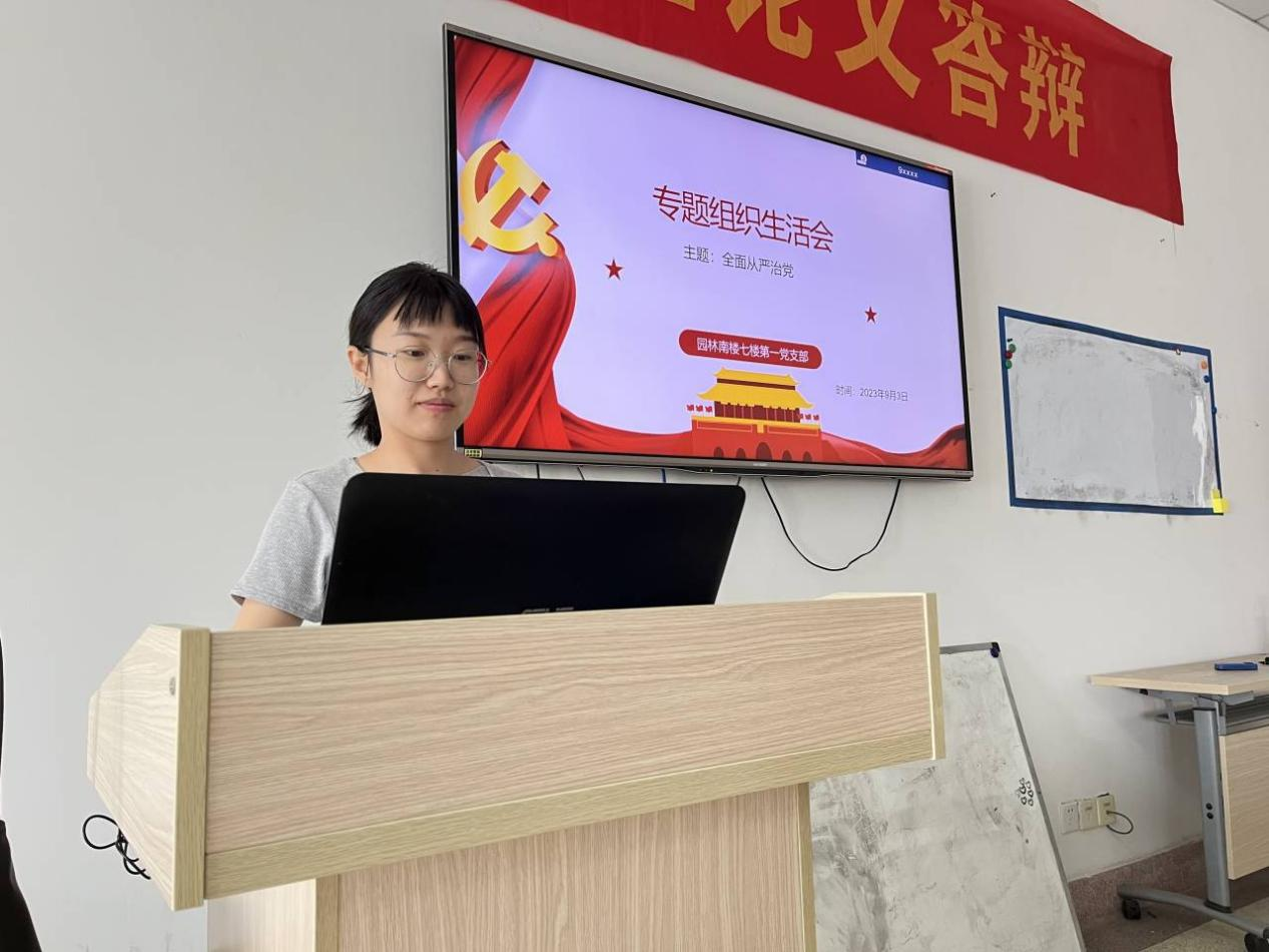 9月2日,园林南楼七楼第一党支部全体党员在南楼721开展主题教育专题组织生活会,支部书记杨丽主持会议。
