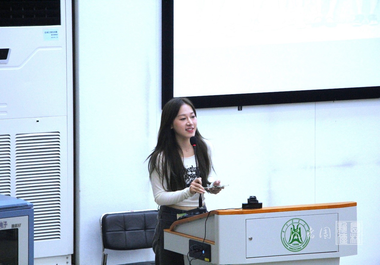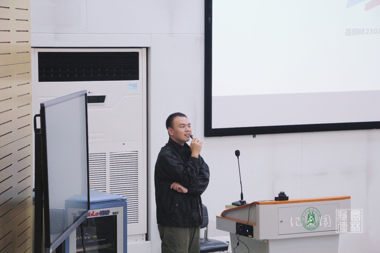 会议接近尾声,院球队的成员上台为同学们进行介绍。园林2003班的黄懿围绕排球队讲述了另类打破信息差的故事。学生会主席团成员张悦和大家分享了园林篮球、足球、羽毛球等各种体育赛事及德赢官网曾获奖项。此外,张悦也向全体同学发出邀请,她说:“生命不息,运动不止,我们欢迎各位对运动感兴趣的同学加入我们各个球队,为学院而战,为球队而战。”