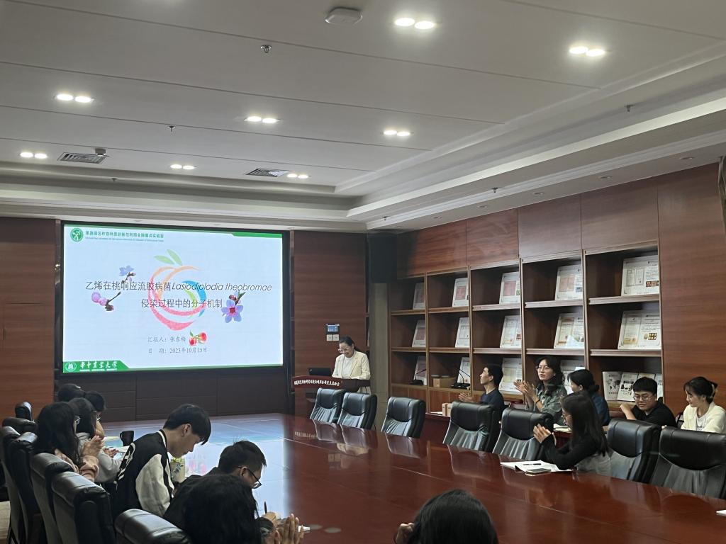 10月15日晚,德赢vwin体育官网登录邂逅园艺“走进植物‘医生’的世界里”交流会在园林南楼206会议室开展。德赢vwin体育官网登录博士后田中欢、张东梅以“植物疾病致病机制研究与防治应用”为主题,向在座观众分别介绍了有关柑橘与桃常见疾病防治的研究进展。